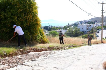 Bodrum Belediyesi ekipleri, ilçe genelinde sürdürdüğü ot temizliği ve budama çalışmalarına Akyarlar…