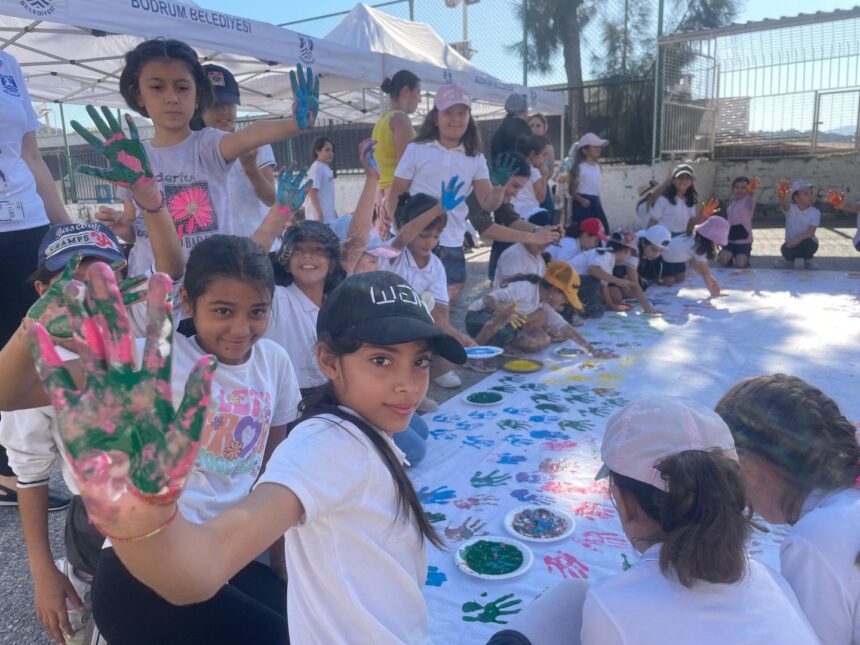 Sabah saatlerinde başlayan etkinlikte Bodrum Belediyesi logosu ile “11 Ekim Dünya Kız Çocukları Günü” yazılı dev boyuttaki kumaş üzerine renkli boyalar ile kız öğrenciler el baskısı yaptı. Etkinlik boyunca coşku dolu anlar yaşanırken tüm renkleri ayrı ayrı kullanarak yaptıkları rengarenk el baskıları, okulda görsel bir şölen oluşturdu. Etkinlik süresince Başkanvekili Halil Eser, öğrenciler ile birlikte el baskısı yaparak kız çocuklarının mutlu gününde sevinçlerine ortak oldu.