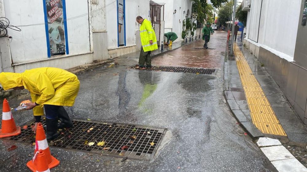Bodrum’da meydana gelen sağanak yağış için Bodrum Belediyesi ekipleri sahada çalışmalar gerçekleştiriyor.