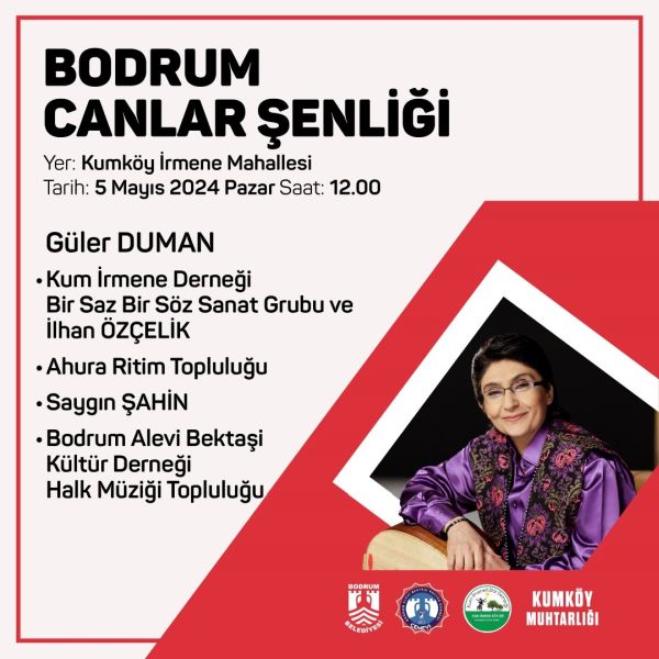 Geleneksel olarak her yıl düzenlenen Bodrum Canlar Şenliğinin 10’uncusu Bodrum Belediyesi destekleriyle Bodrum Alevi Bektaşi Kültür Derneği, Kumköy Muhtarlığı ve Kum İrmene Kültür Derneği iş birliğiyle 5 Mayıs Pazar günü saat 12.00’de Kumköy İrmene Mahallesinde gerçekleşecek.