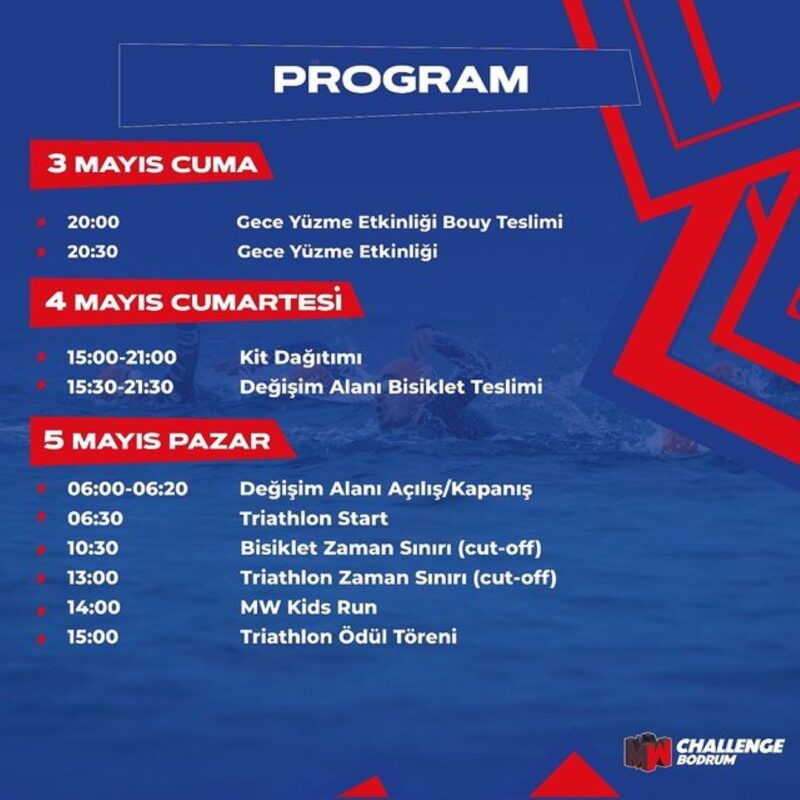 Yüzme, bisiklet sürüşü ve koşunun ardı ardına yapıldığı triatlon yarışlarının Bodrum’da 4’üncüsü yapılacak. Bodrum MW Challenge Triatlon, 5 Mayıs Pazar günü saat 06.30’da Double Tree by Hilton Bodrum Işıl Club Resort’ten başlayacak. Yarışlar, aynı gün saat 15.00’te yapılacak olan ödül töreniyle son bulacak.