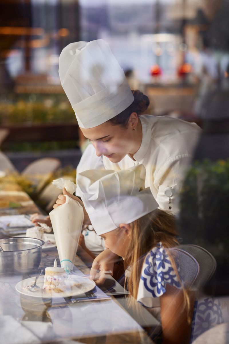 Mandarin Oriental Brunch, süpriz ikramlardan geleneksel tatlılara, canlı pişirme istasyonlarından İtalyan ve Asya mutfağına uzanan geniş seçenekleriyle gastronomi tutkunlarını Boğaz manzarasında buluşturuyor. Şarküteri ve peynir çeşitlerinin yanı sıra deniz ürünleri, kuzu pirzola ve Beef Wellington gibi mevsimsel lezzetler menüye zenginlik katıyor. Çocuklara özel pizza ve kek yapımı atölyelerinin yanı sıra Kids Club erişimi ve bebek bakıcılığı hizmeti bulunuyor.