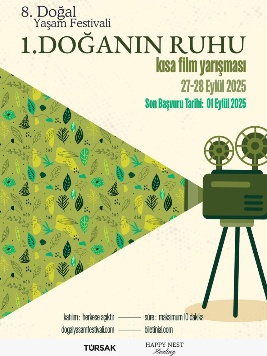 Türkiye Sinema ve Audiovisüel Kültür Vakfı (TÜRSAK) ve Happy Nest Healing iş birliğiyle bu yıl ilk kez düzenlenecek “Doğanın Ruhu” Kısa Film Yarışması, 8. Doğal Yaşam Festivali kapsamında sinemaseverlerle buluşuyor.