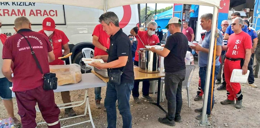 Afet uzmanları ve gönüllüleriyle bölgede sıcak yemek, çorba, kumanya, ekmek, ikram malzemesi, içecek ve su desteğinde bulunan Kızılay ekipleri, sabit noktalara gelemeyen çalışanlara da mobil ekipleriyle gıda malzemeleri ulaştırıyor. Türkiye Afet Müdahale Planlamasına göre afetlerde beslenme hizmetlerinin sorumlusu olan Kızılay, Marmaris yangınında da her öğün için 3 bin kişilik 3 çeşit sıcak yemek çıkartarak görevini yerine getiriyor. Kızılay, yangın kontrol altına alınana kadar bölgedeki çalışmalarını yürütmeye devam edecek.
